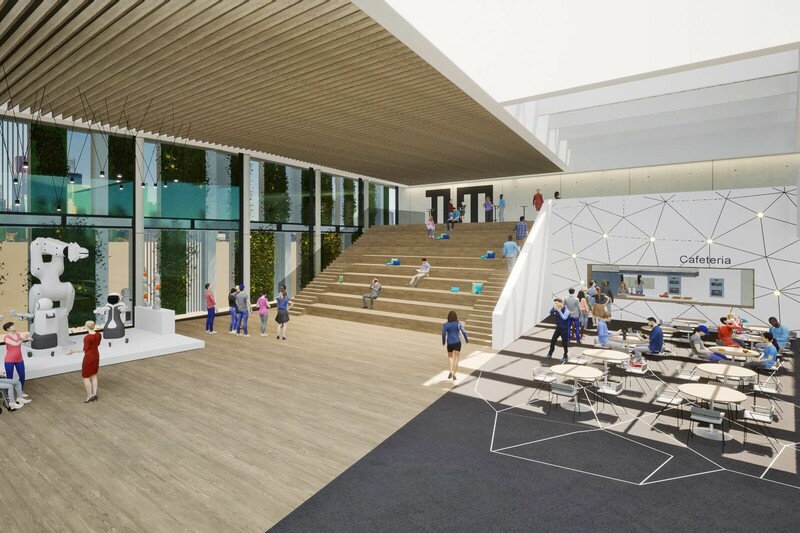Die einzelnen Gebäude des Campus sind teilweise miteinander verbunden und weisen unterschiedliche Gebäudehöhen auf, um nicht zu massiv zu wirken. In Kombination mit den Materialien und der begrünten Fassade wird sich der Campus harmonisch in die einzigartige Umgebung am Fuße der Berge einfügen.