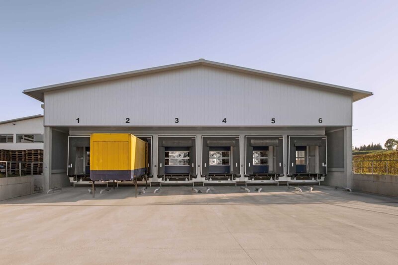 Im ersten Schritt wurde das 7.500 m² große Logistik- und Montagezentrum gebaut. Hier stehen für einen reibungslosen Material- und Warentransport u. a. sechs LKW-Laderampen zur Verfügung. Die Lagerfläche beträgt 2.500 m² und die Montagefläche 5.000 m².