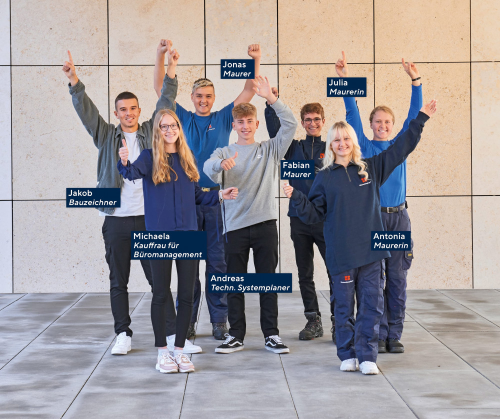 Im Bauhandwerk fangen gleich vier tatkräftige junge Leute an, wobei wir uns besonders freuen, mit Julia und Antonia auch zwei angehende Mauerinnen neben Jonas und Fabian im Azubi-Team zu begrüßen.